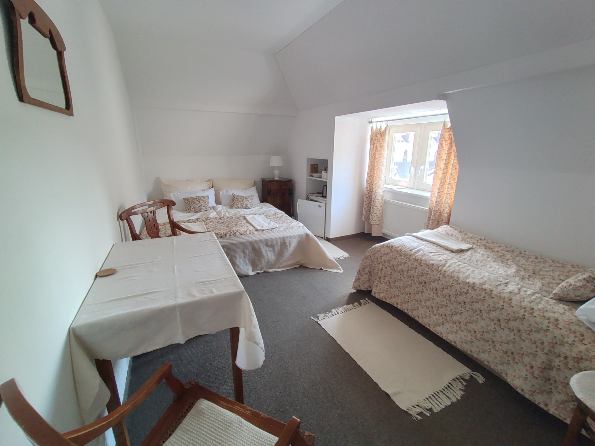 Pokoje jsou volné vždy od 14:00 a opustit pokoj prosíme do 10:00. Parkovat je možné zdarma v přilehlých uličkách náměstí. V penzionu je k dispozici prostor pro úschovu i dobití kol a úschovu lyží. Pokud preferujete cestování na motocyklu, i ten si u nás můžete bezpečně uschovat. Parkování je zajištěno na uzavřeném dvorku.